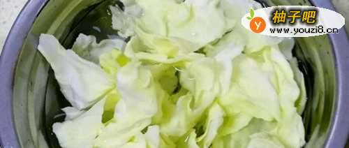 首先,把包菜清洗干净,切成比较碎的小块(也可以是别的菜,个人爱好)备用,如下图所示。