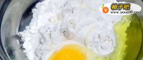 3然后,倒出适量的面粉,加入适量的盐(增加面的劲道),之后打入一颗鸡蛋,搅拌均匀,加入清水,顺时针搅拌直到面起劲。