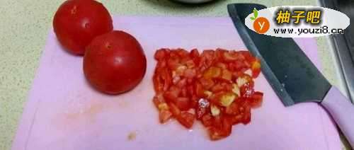 2接下来,把西红柿清洗干净,切成小块,备用。