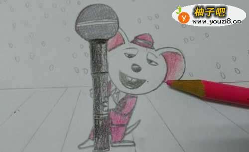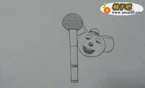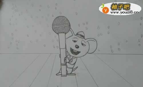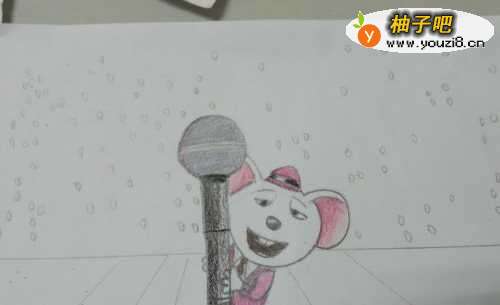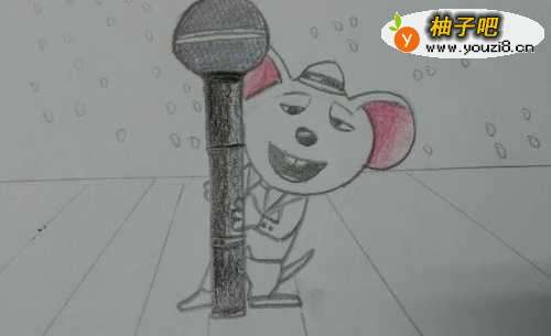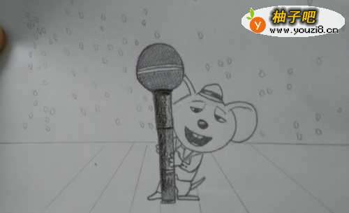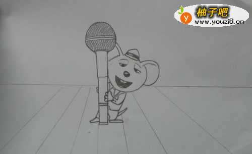 画场景,就要画人物、人物的动作、舞台和背景,下面就画一个老鼠迈克。画他抱着大麦克风表演的样子。
