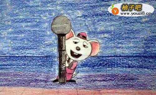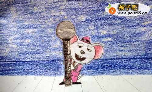 14用棉签把背景及地板颜色擦一遍,那些光点就更明显了。老鼠迈克表演的场景就画完了。