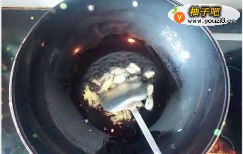 3锅烧热放油,待油温热后再放入事先准备好的姜蒜进行爆香。因为茄子我们不进行事先煎炸了,所以这个时候油还是要多放一点的,因为如果油太少的话,味道肯定是有差,不是说油多不坏菜嘛。
