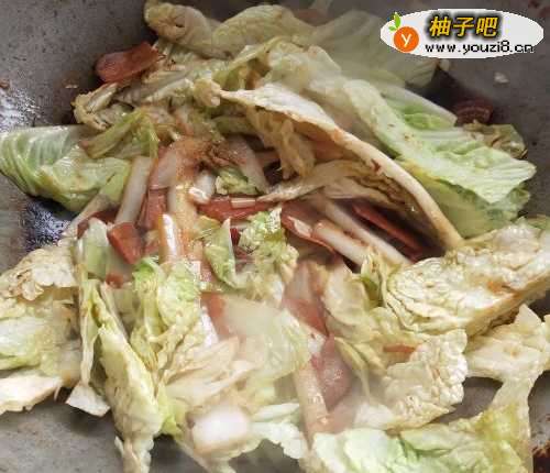 6如图,大火爆炒五分钟,白菜浓缩,此时可以闻到非常香的味道,加入适量鸡精后关火。