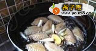 3第三步:在锅里放少量的油,烧热了,再放入鸡翅,煎一煎,煎到鸡翅的两面都泛黄