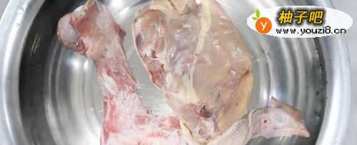 把猪腿骨和鸡架用凉水泡
