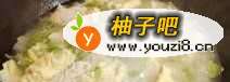 5锅内留底油,倒入大白菜大火煸炒均匀