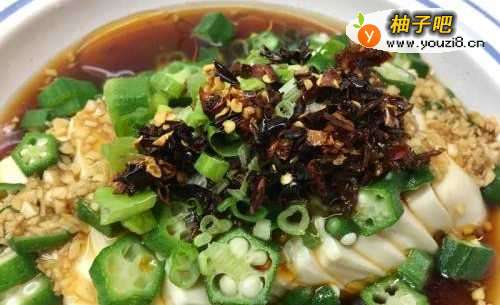 7然后趁热淋入于秋葵豆腐的葱花上即可