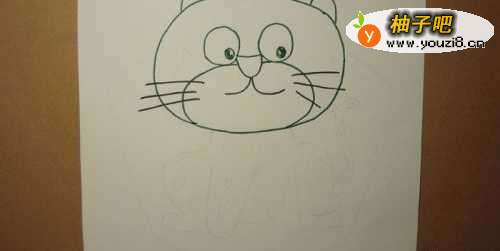 2铅笔画好草图后,取黑色彩色笔在白色卡纸上,画出可爱的小花豹的头的部分出来,并画出耳朵,如下图所示。