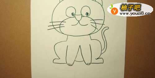 4然后,用黑色水彩笔在白色卡纸上,画出可爱的小花豹的身体、腿脚和尾巴的部分出来,如下图所示。