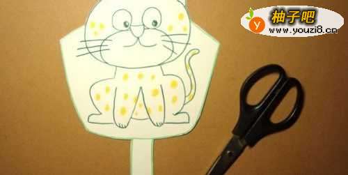 6最后,用剪刀把白色卡纸上可爱的小花豹扇子的图形剪出来,这样一把可爱的小花豹扇子就做好了,如下图所示,大家也来做做吧。