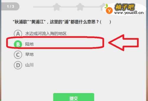 你需要在第一题选B,原因是“浦”的形旁为水,当然与水有关
