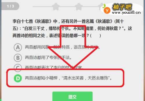 6你需要在第四题选D,原因是《秋浦歌》(其十四)主要表达了对劳动人民的赞美之情,并无忧愁寂寞之感