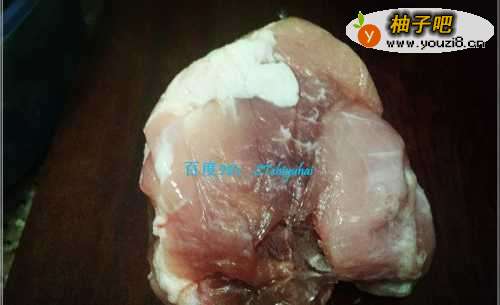 3准备若干腿肉、瘦肉,将其退冰清洗干净,然后切成薄片状,放入碗中,加入各种调味料腌制。