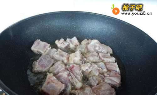 8加入炸好的排骨炒匀。