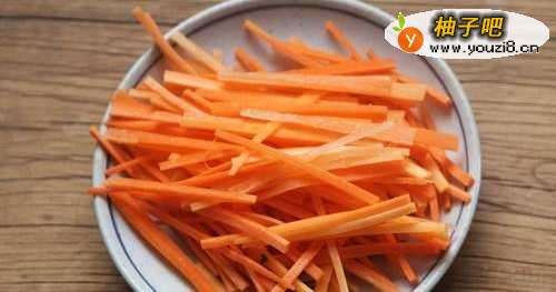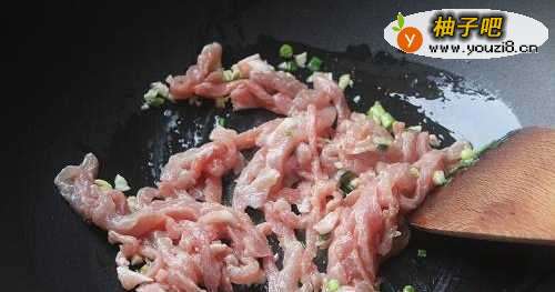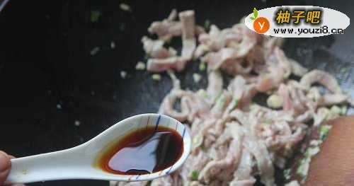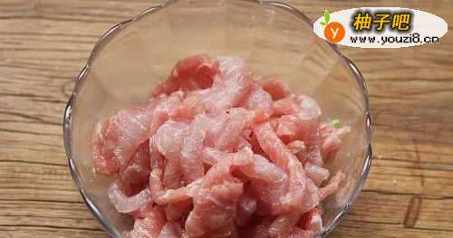 3把肉切成细丝,放入适量水淀粉搅拌均匀;