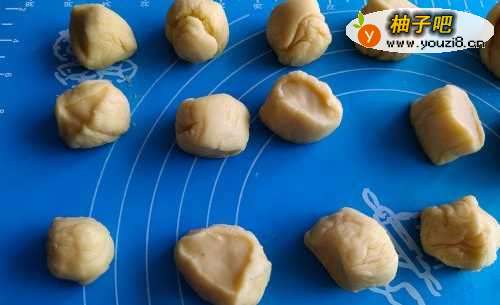 2发酵好后,拿出,分成小团子。将小团子压成饼状,5个一组叠在一起,这个没有硬性规定。
