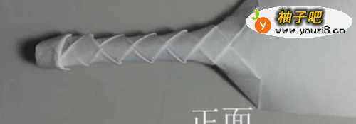 5将顶部的弧线向内折叠,有能力的同学可以折叠成弧形。武士刀最终就完成啦。