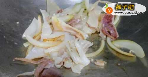 6起锅前淋上一些香油,加盐调味,青椒炒鱿鱼就完成了