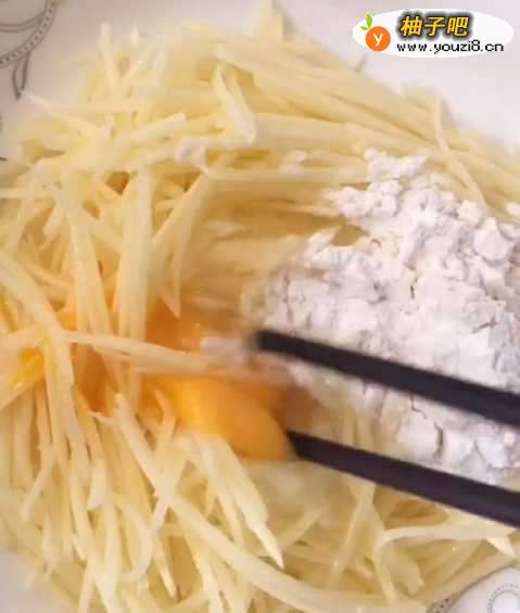 4倒入土豆丝,摊成饼;