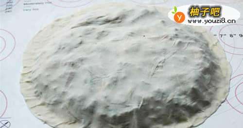 8再盖上一个饼,把边缘按紧,这样就做好了一个烙馍的胚子