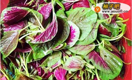 挑选一把红苋菜,苋菜不要太大的,太大的叶子较老,菜叶新鲜无较多虫洞,顶部不要有开花痕迹,开花的苋菜无论口感和营养价值都会差很多。