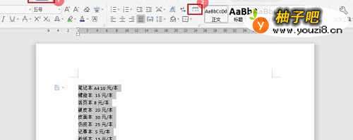2按快捷键【CTRL+A】,选择文档中的段落文字;
