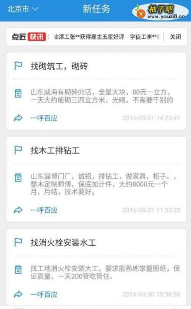 现在时代的变化,工人们的生活也有着变化,只要有一部智能手机,在家也能接到活!