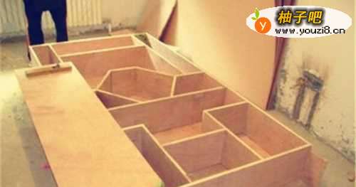 4接着做木工。包括玄关隔层,吊顶,背景墙,做柜,门的安装。