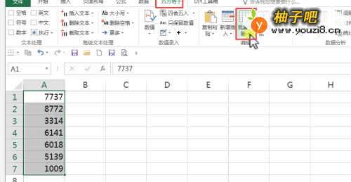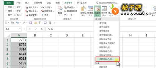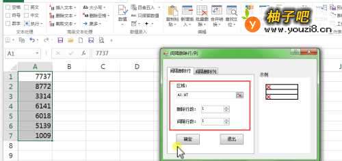 4区域选择【A1:A7】,删除行数、间隔行数各输入【1】,单击【确定】