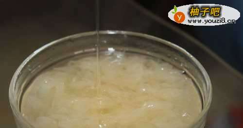8煮好后,盛出来,倒上适量蜂蜜,如图所示。