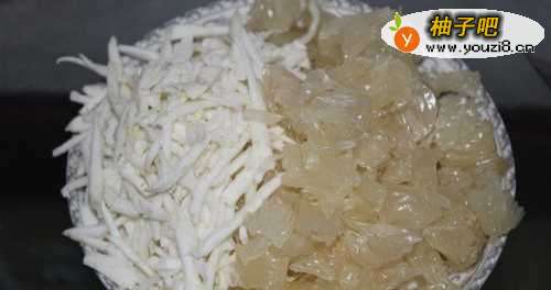 6柚子皮煮过之后,泡几个小时,多换几次水,去去苦味。