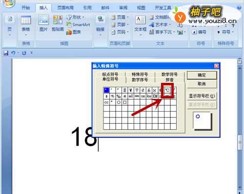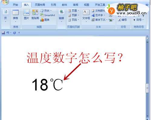 2. 在数字18的后面,直接输入文字【摄氏度】