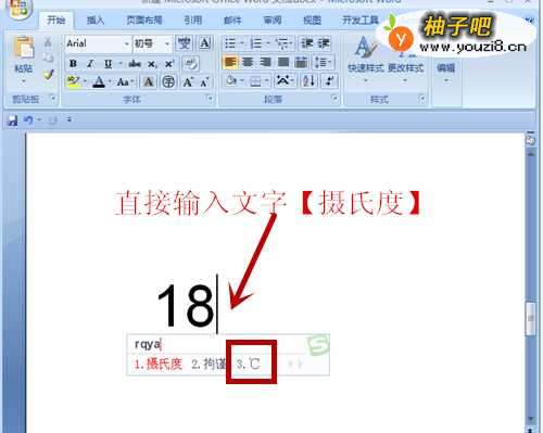 5在数字18的后面,直接输入文字【摄氏度】,系统便会显示温度符号。在这里,选择【3】。