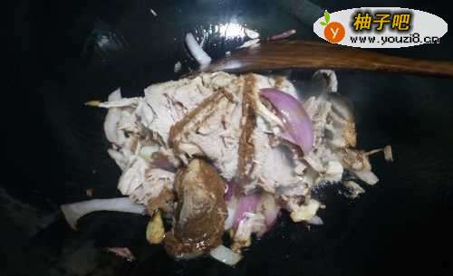 6加食盐、五香粉、酱油、盖上盖子闷3分钟左右!