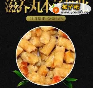滋养丸 : 可以说是鹦鹉界里最受欢迎的饲料了,经过多种配方打磨烘干而成,高温杀菌杀虫,天然瓜果蔬菜谷物坚果制造而成,比较坚硬适合鹦鹉磨牙进食