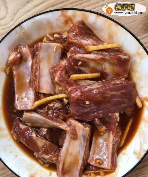 把排骨放进清水里浸泡一会儿,泡出血水后洗净,放入姜蒜末