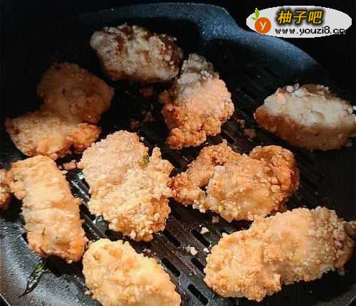 5气炸锅180度,放入鸡块并喷上少许油,气炸约8-10分钟,中途抽出来翻面及喷油,炸至金黄脆身。