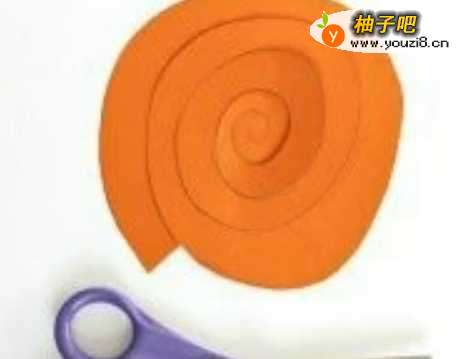 2然后沿着螺旋线用剪刀将折纸剪开。
