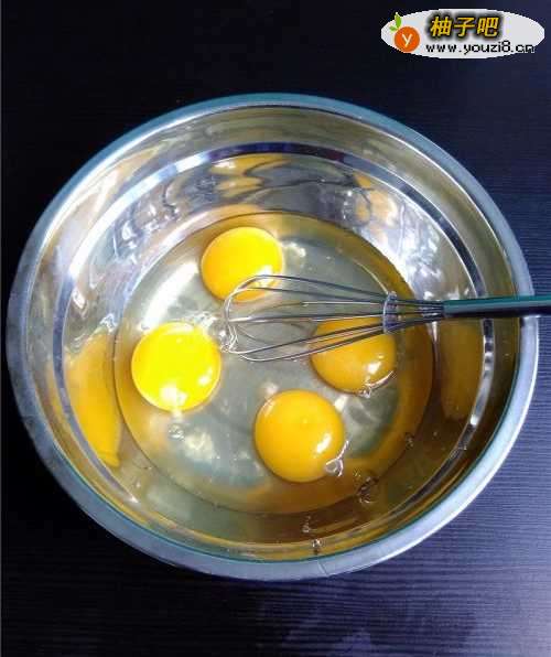 2鸡蛋磕入无油无水的盆里。
