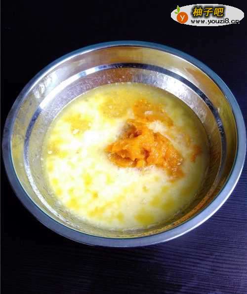 5放入牛奶、南瓜泥。
