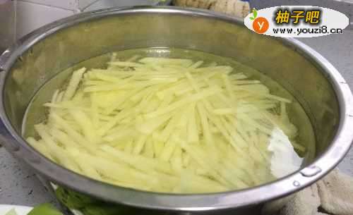 土豆洗干净,切成丝,放在凉水里把淀粉沉淀下