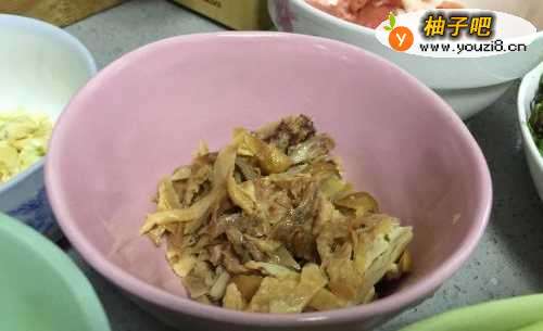 2用熟食鸡肉,拔一块鸡胸肉,切成丝,备用,姜蒜切成沫备用