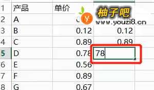3设置好之后,我们在表格中录入78,回车显示的是0.78,设置成功。