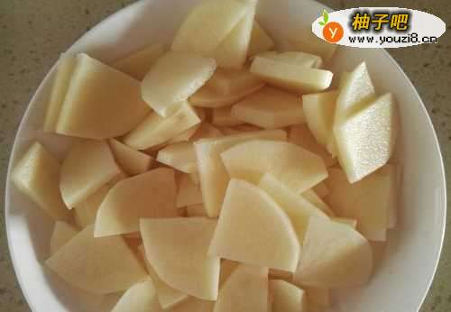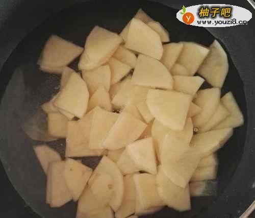 2土豆去皮切成片,清水中过于一下放在变锈。