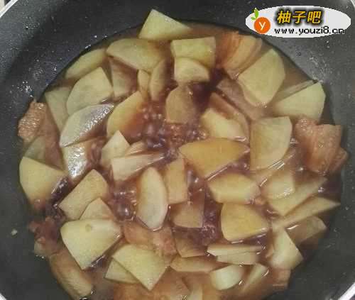 7倒入土豆片,放入少许生抽提鲜,加少许盐煮大约3分钟。