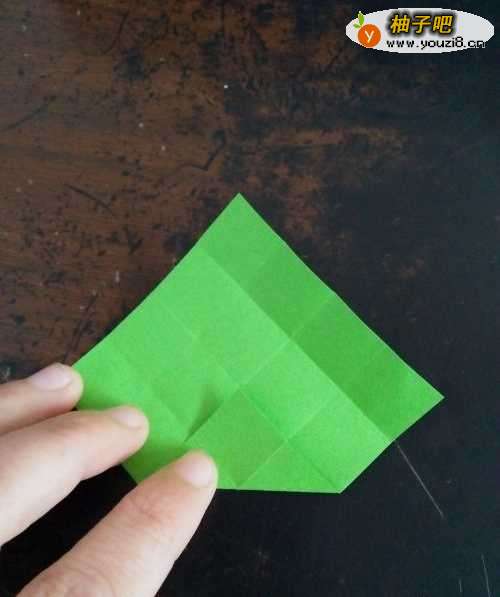 8我们把叶子的尖部向后折如图。