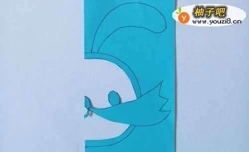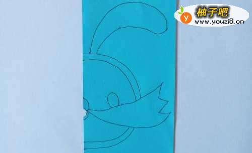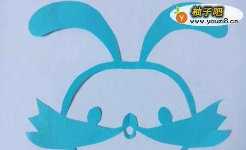 蓝色卡通兔子头的剪纸方法