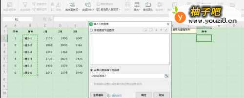 2选择【空白单元格】,点击【插入】—【插入下拉列表】,选择下拉选项区域【B2:B7】,点击【确定】;