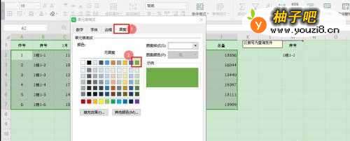 5点击【格式】—【图案】,选择【颜色】设置填充效果,然后点击【确定】-【确定】;