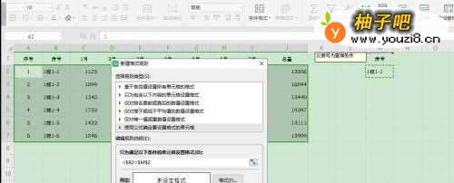 4在规则窗口,选择【使用公式确定要设置格式的单元格】,满足条件的单元格设置格式,输入=B2=M2